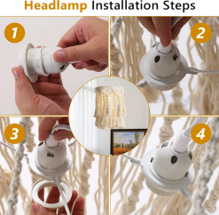 Handmade Macrame Boho Lamp Shade – Plug-In Hanging Pendant Light