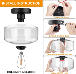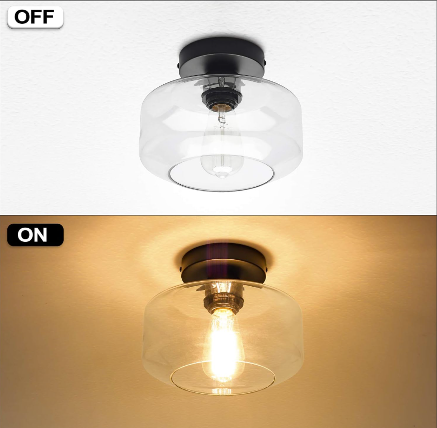 Industrial Semi Flush Ceiling Light with Clear Glass Shade – Farmhouse Pendant Fixture
