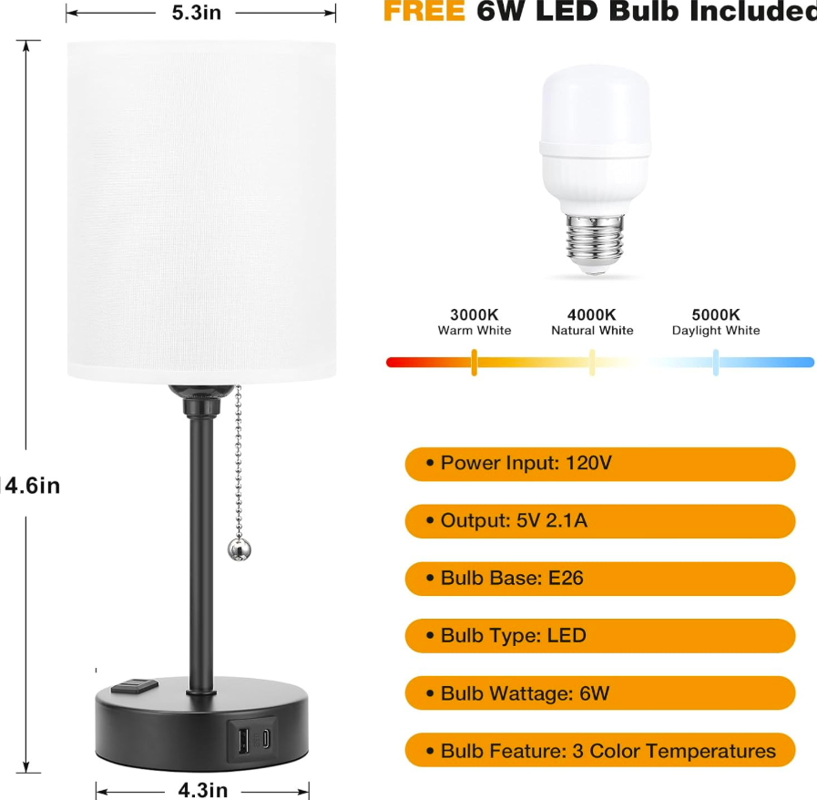 A 6W LED bulb (valued at $15) comes with your lamp, offering the brightness of a 60W incandescent bulb while using far less energy and producing minimal heat. Perfect for reading, studying, or daily lighting. Compatible with smart bulbs as well.